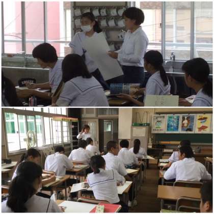教育実習が始まって、3週間目の週が始まりました。6限、美術の授業を実習生が行うというので参観しました。3年生の授業でポスター作りの授業です。自分の紹介をした後、ポスター作りのポイントを説明し、子どもたちの作業を支援します。一人一人作業を見守りながら指導助言をしてくださいました。