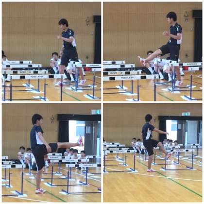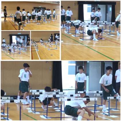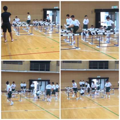 保健体育科の教育実習生の授業の様子です。ハードルの授業で、最初、運動場で行っていたのですが、雨が急に降り出して、体育館で行うことになりました。急な予定変更にもかかわらず1年3組の生徒はテキパキと動いていました。先生が見本を見せ、説明をし、実際にやってみるということを繰り返しやっていました。