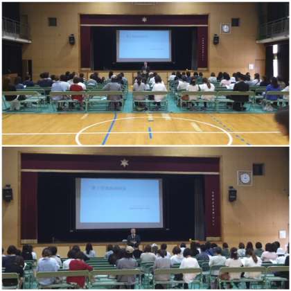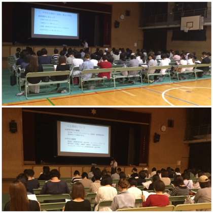 体育館で、3年生の保護者対象に進路説明会を行いました。学年主任から学年の概要の説明の後、進路主事から進路指導の概要を説明させていただきました。