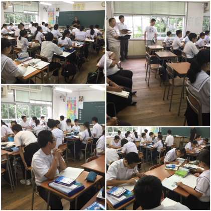 3年生の先生方による研究授業が行われました。2限と6限に行われました。6限では、1,2年生を下校させて、3年生の学級で国語、英語、理科の授業が行われました。1,2年生の先生方も参観されました。