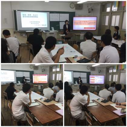 授業の参観の後は、教育センターから指導主事の石田先生にお越しいただき、指導助言をいただきました。新指導要領に向かって、「主体的、対話的な深い学び」についてお話を聞きました。
