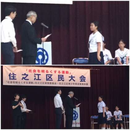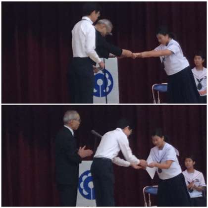 作文の最優秀賞には小川さんの作品が選ばれ、賞状と記念品が贈られました。また、表彰後、作文を舞台の上で緊張しながらも、しっかりと読んでくれました。