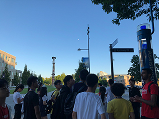 1年生の宮本さんは、22日、住之江区中学生海外派遣事業のカナダ研修に参加していますが、その様子の写真が入ってきましたのでお知らせいたします。22日空港での様子、22日到着後のキャンパスでの様子、23日サイエンスワールドでの様子です。