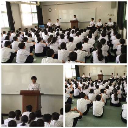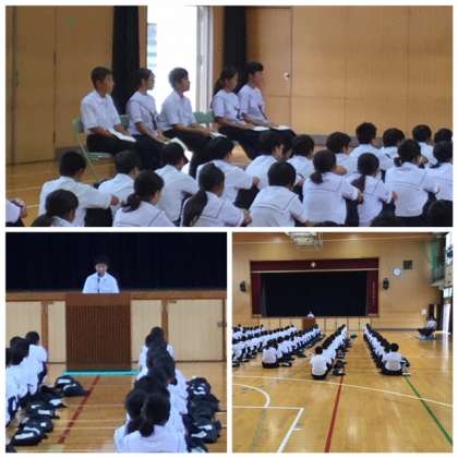 文化祭では、各学年の代表として「私の意見」を発表しています。各学年テストが終わった6限に学年の代表者を選ぶ選考会が開かれました。(写真は、1・2年生の選考会の様子です)