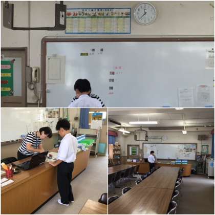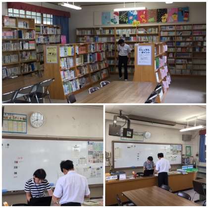 早速、1年生の生徒二人が、3限後の休み時間に返却をし、新しく本を借りていきました。(写真の時計に注目してください。)