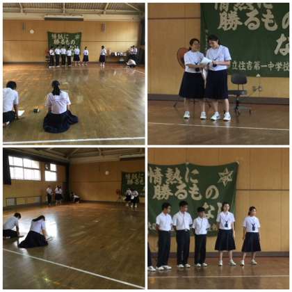 9月28日(金)の文化祭に向けて、各学年が取り組みを始めています。中学校生活最後の文化祭になる3年生は、クラスごとで演劇を行います。5.6限の様子ですが、みんなで力を合わせて頑張っています。(写真上から、1組、2組、3組です)
