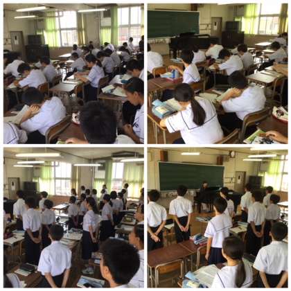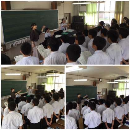 2限、1年2組は音楽の授業でした。音楽室で、文化祭で発表する曲を学習しました。発音に気をつけ、ハーモニーの美しさをみんなで奏でようと先生から指導がありました。