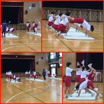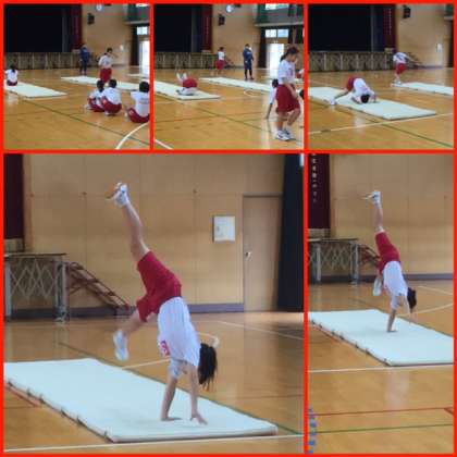 3年3組の女子は、体育館でマット運動です。倒立、前転、後転、開脚前転、開脚後転、そして、側転の練習をしました。今日の目標は、倒立前転です。これから練習して倒立前転ができるように練習を始めるところです。先生から、安全について細かいところまで説明を受けていました。頑張ってできるようにしてください。