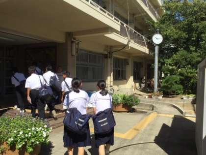 台風24号の影響で、10月1日は10:30からの始業。2時間遅れの登校でしたが、大きな被害も見受けられず、授業を開始することができました。台風一過の晴れ間です。