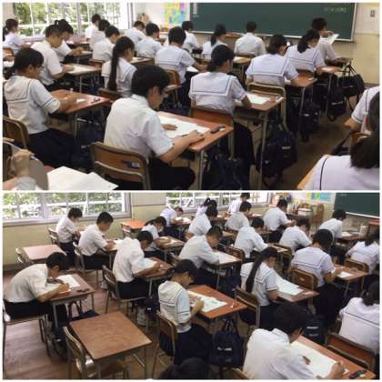 3年生対象に、統一テストを行いました。1限は、国語です。