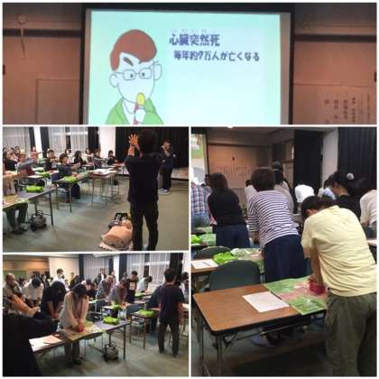 5日19時から、本校多目的室で、四校園PTA人権講演会が行われました。心臓突然死に対応できるよう、救命救急法の講演をしていただきました。