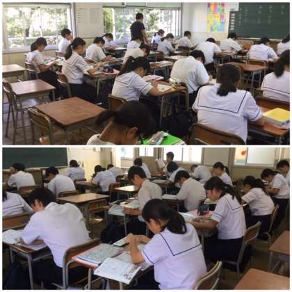 5限、3年3組は国語の授業です。漢文の学習をしました。2年生で学んだことを復習しながらプリントで学習を進めました。習ったのに、忘れていたことも再確認できたのではないでしょうか。