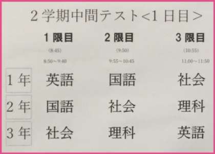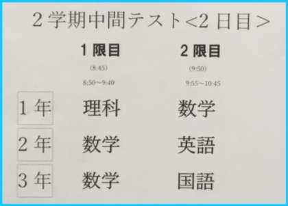 10月15日(月)、16日(火)の二日間、中間テストが行われます。しっかりとテスト対策の準備をして臨んでください。