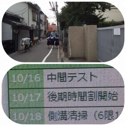 2学期の中間テストが終了しました。明日(17日)から後期の時間割になります。間違わないようにしてください。また、更衣準備期間は今週で終了し、リア州から冬服になりますので合わせてお知らせいします。