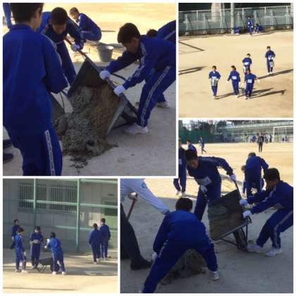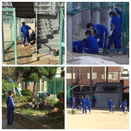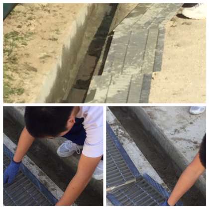 溝から出した土をバケツに入れたり、一輪車で運びます。慣れないせいか、また積みすぎたのか、一輪車を足してしまい、土をばらまいてしまうこともありました。しかし、管理作業員さんの協力もあり、またみんなの協力で概ね溝はきれいに土がない状態になりました。