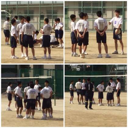 22日(月)、5限に2年1組。2組男子の体育の授業を参加しました。バレーボールの授業です。どうすれば、ボールをつなぐことができるのかを班員で話し合って、それを基本に練習をしました。