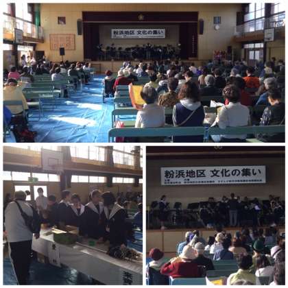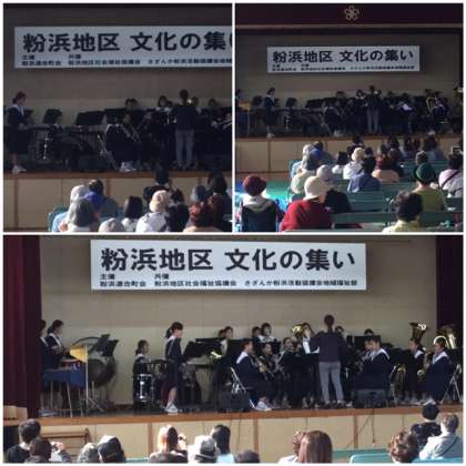 粉浜小学校で、粉浜地区文化の集いがありました。吹奏楽部が演奏をさせていただきました。