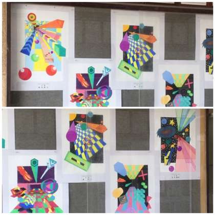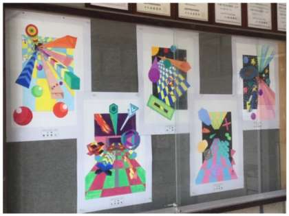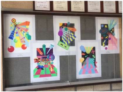 総文祭美術展で展示をしていた作品を、玄関に展示しています。1年生の作品から、2年生の作品に変わりました。
