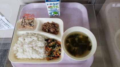 本日の献立は、ビビンバ、わかめスープ、アーモンドフィッシュです。