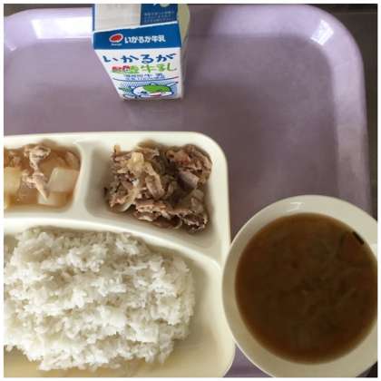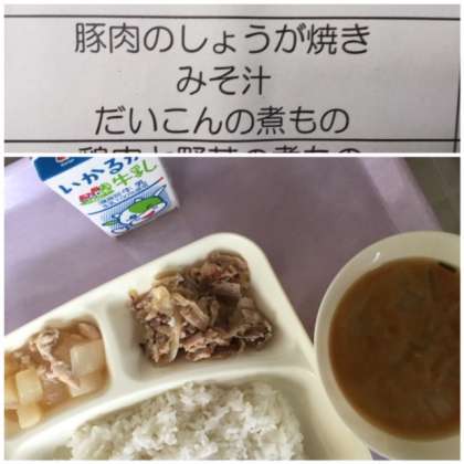 本日の献立は、豚肉のしょうが焼き、みそ汁、だいこんの煮ものです。