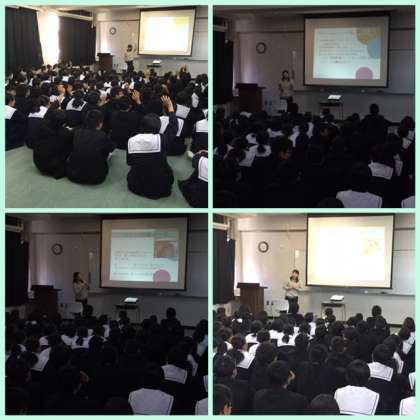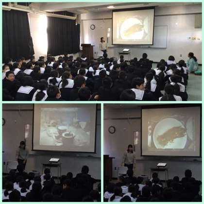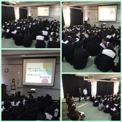 1年生は、多目的室でお話を聞きました。ベトナムでの活動のお話でした。アフリカなどの国々とは違い、アジアの国で、住んでいる人のようすも、文化も日本に近いことが却って、日本豚違いを際立たせていたといったお話がありました。