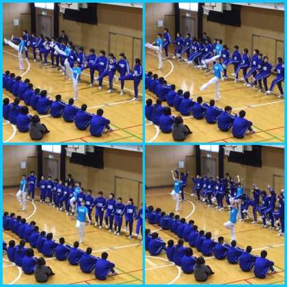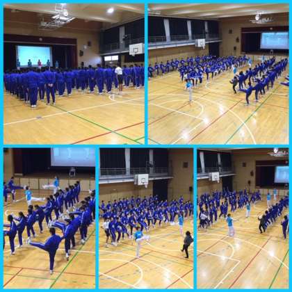 2限に終わった1年生の後、2年生は3限に体育館で授業を受けました。全体で振付を教わり、練習をし、音楽に合わせてダンスをしました。