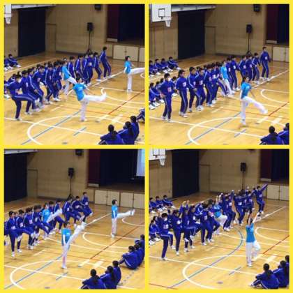 3学年の授業をしていいただきました。どの学年の生徒も楽しく授業を受けていたと思います。また、写真でもわかるように、プロダンサーのラインダンスの足の上げた高さや姿勢の良さはさすがだなあと思いました。最後に、多くの学校に授業に行っておられる講師の先生方から、生徒の皆さんの授業を受ける態度やあいさつには感服したとお褒めの言葉をいただきました。