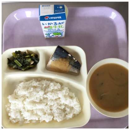 本日の献立は、さばのみぞれがけ、みそ汁、こまつなの煮びたしです。