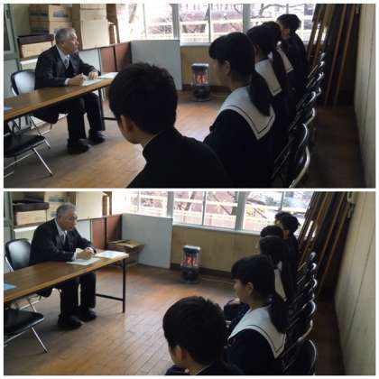 19日(水)、3年1組の校長面接がありました。いつもの元気な声は影をひそめ、緊張のあまり、小さな声しか出ず、そして思ったことがスムーズに言えなかったと残念な思いをした人が多かったのではないでしょうか・