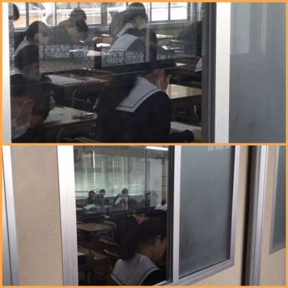 3年生は、学年最後の実力テストを受けています。いよいよ、受検本番に向けての最後の仕上げとなる実力テストです。8日(火)、9日(水)の二日間に分けて行われます。悔いの残らないように頑張ってください。なお、10日(木)に1,2年生のチャレンジテストが行われます。