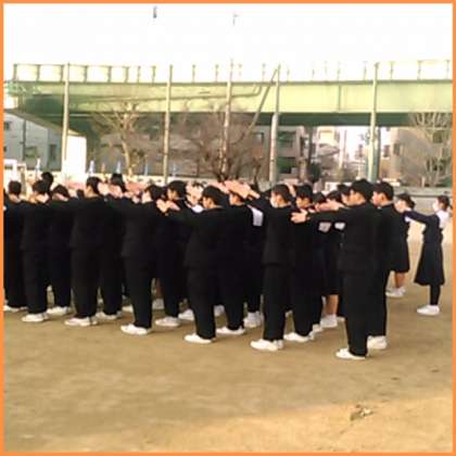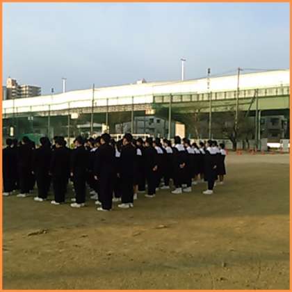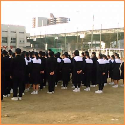私立高校出願の準備に向け頑張っている3年生ですが、水曜日は学年集会の日です。仮設校舎建設のため、いつものグランドの場所ではなく北グランドで学年集会を開きました。