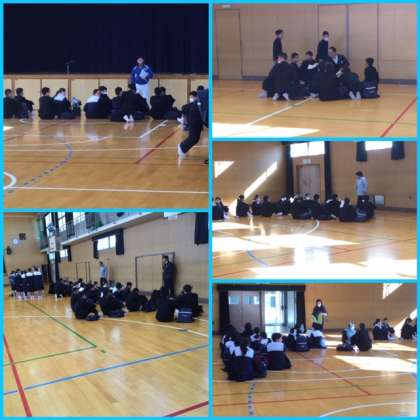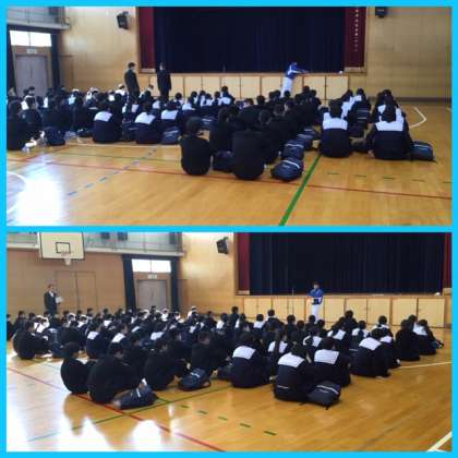2年生は、来週7日(木)、8日(金)の二日間、地域のたくさんの事業所で職場体験をさせていただきます。それに合わせて、本日(1日)、お世話になる事業所にご挨拶に伺いました。体育館で全体の諸注意を聞き、グループごとに分かれて確認をし、それぞれの事業所に、緊張の面持ちで出発しました。