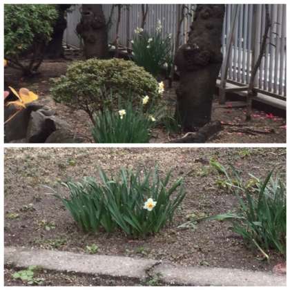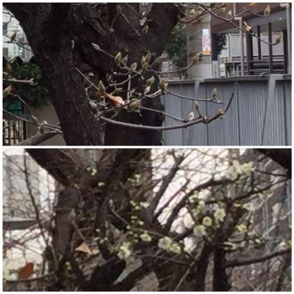 玄関の白梅などに花が咲き始めました。スイセンも、少しずつ咲き始めています。