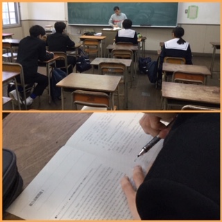 私立高校の入試が終わり、今回から公立高校向けの内容に変わるようです。希望者の生徒は公立高校受験に向けて学習会に参加していました。