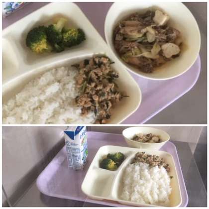本日の献立は、すき焼き煮、ブロッコリーのしょうがづけ、ツナっ葉いためです。