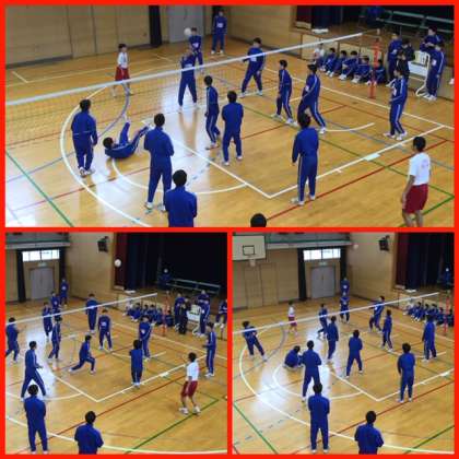 28日午後、体育館で3年生のバレーボール大会が行われました。学級の委員が中心となり、審判などの役割も自主的に取組んでいました。