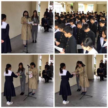 木曜日に卒業式を控えた3年生に対して、同窓会、PTAのみなさんがご来校され、本校同窓会への入会式が行われました。