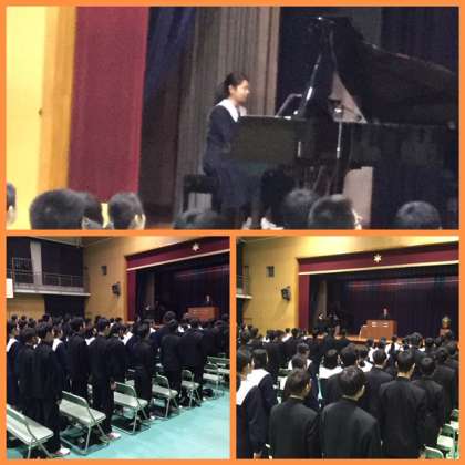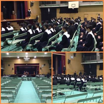 公立高校の入試が昨日終わり、木曜の卒業式を待つばかりとなった3年生ですが、同窓会の入会式後、体育館で、通しの練習をしました。授与されるときの動作もスムーズになってきました。歌う声も大きくなってきました。