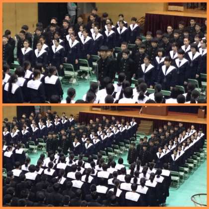 合唱後、卒業生を代表のあいさつがあり、良き伝統を引き継いでほしいという気持ちを伝えてくれました。