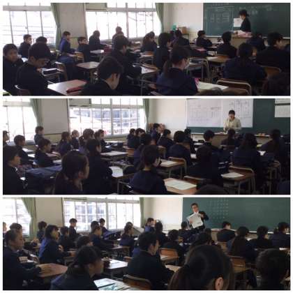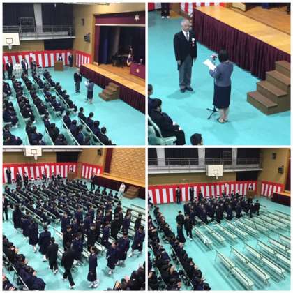 最後に新入生保護者代表の方のあいさつが続き、閉式となりました。その後、教室で初めての学活がありました。(写真の上から1組、2組、3組です)