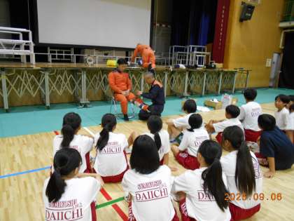 青少年指導員会の方々を中心にして、中学生防災体験が実施されています。