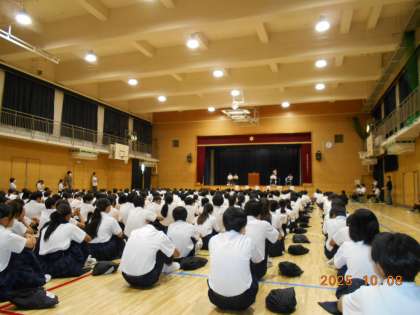 本日は生徒会の新しい役員を決める選挙が実施されました。写真は、立候補者、応援者の演説の様子です。