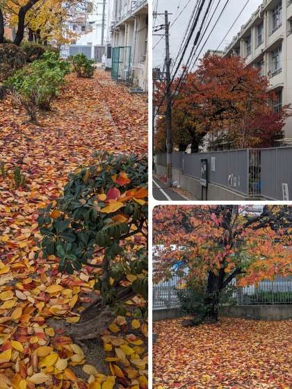 桜の落ち葉でじゅうたんのようになっています。