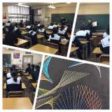 尾崎先生の3年4組の美術の授業を参観しました。今学期初めから取り組んでいる線織面...
