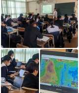 2年生の理科。 パソコンを使って、低気圧付近の風の吹き方を観察しています。