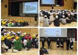 小学校6年生の皆さんに来てもらい、生徒会役員が中学校の紹介をしています。