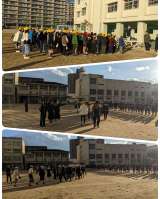 小学6年生は中学校の在校生に見送られて、小学校に帰ります。 来年4月の入学を待っ...