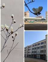 校内のハクモクレンの花が咲いています。