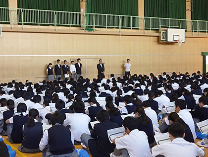 今日は、いじめについて考える全校集会を行いました。校長先生から、いじめのない学校づくりについてお話をしていただきました。