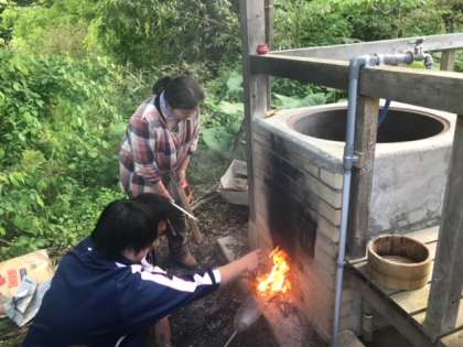 各民家さんのところで普段できない体験をたくさんしています。りんごの芽切りや五右衛門風呂の支度をしています。